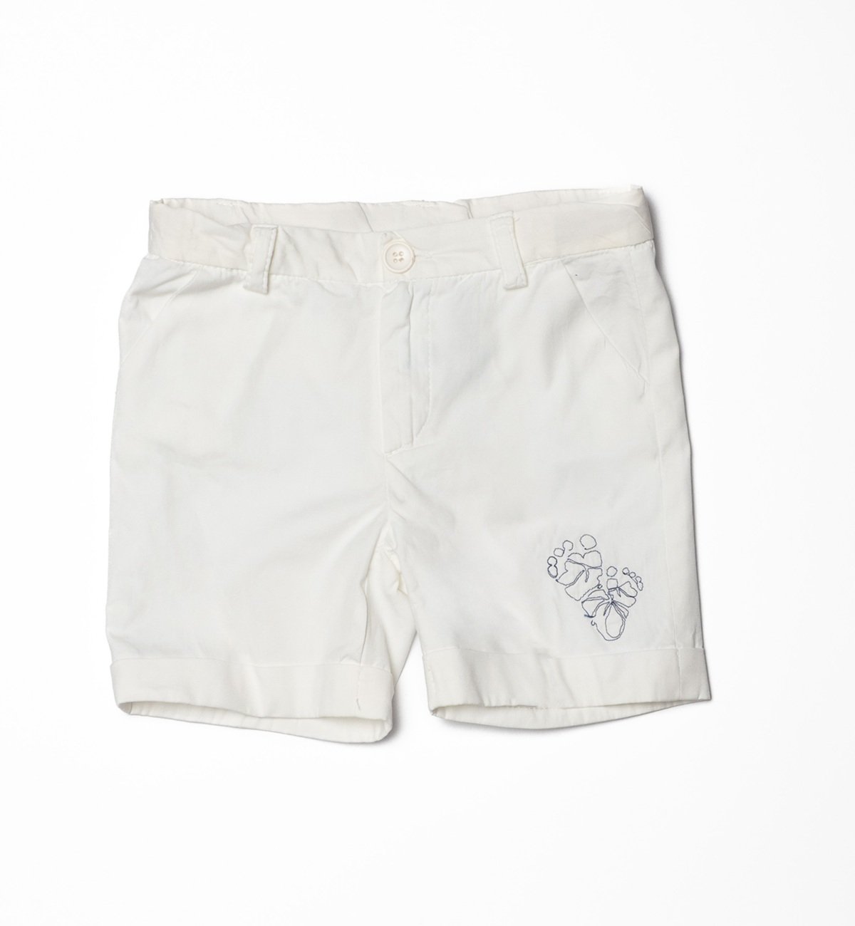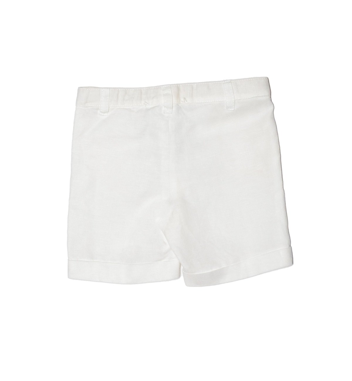 Pantaloni in stile inglese, interamente bianchi con risvolti in cotone riciclato leggero simil lino.